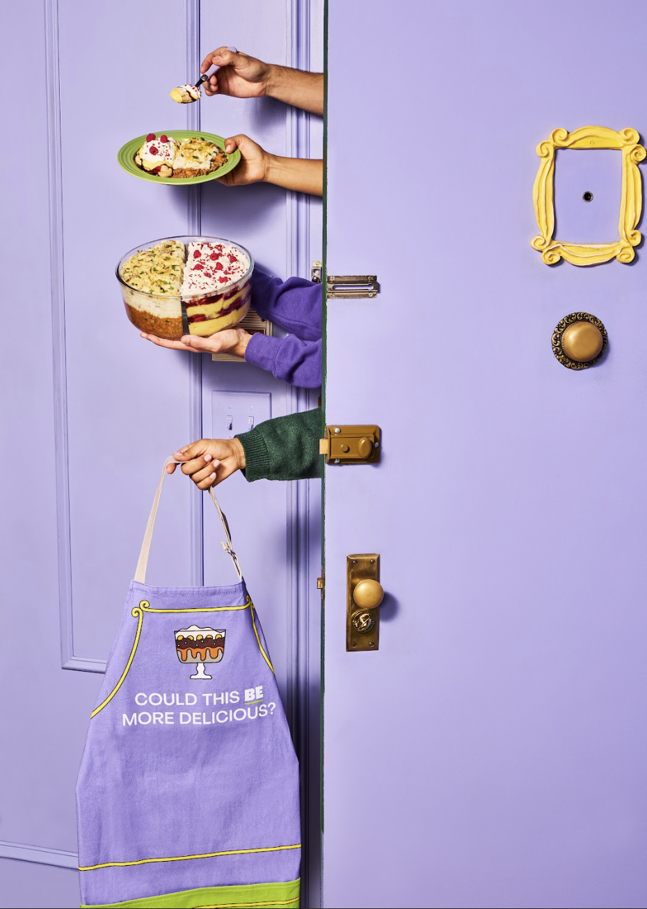 The limited-edition meal kit provided everything needed to recreate the sweet and savory trifle along with a one-of-a-kind custom trifle dish designed to keep the recipes separate. This approach allowed fans to channel either their inner Joey and bravely devour the two recipes together, or keep them separated (like Ross and Rachel "on a break")