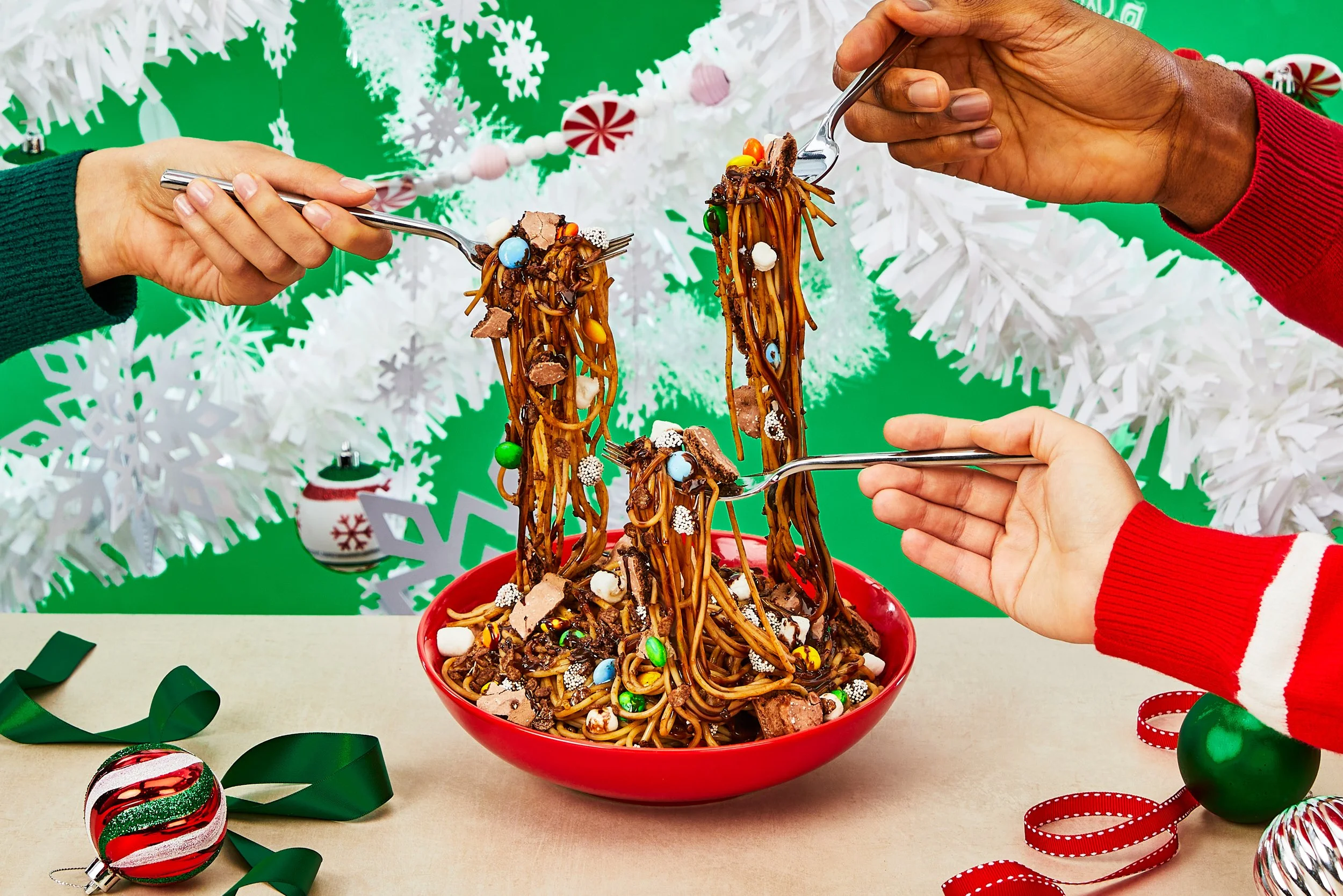 I oversaw the creative for these partnerships, making sure we captured the excitement and whimsical vibe of the movie in all of our photography. Making a dish like this look appealing is channeling, but we collaborated with our talented styling team and photographers to make candy covered pasta actually look good!