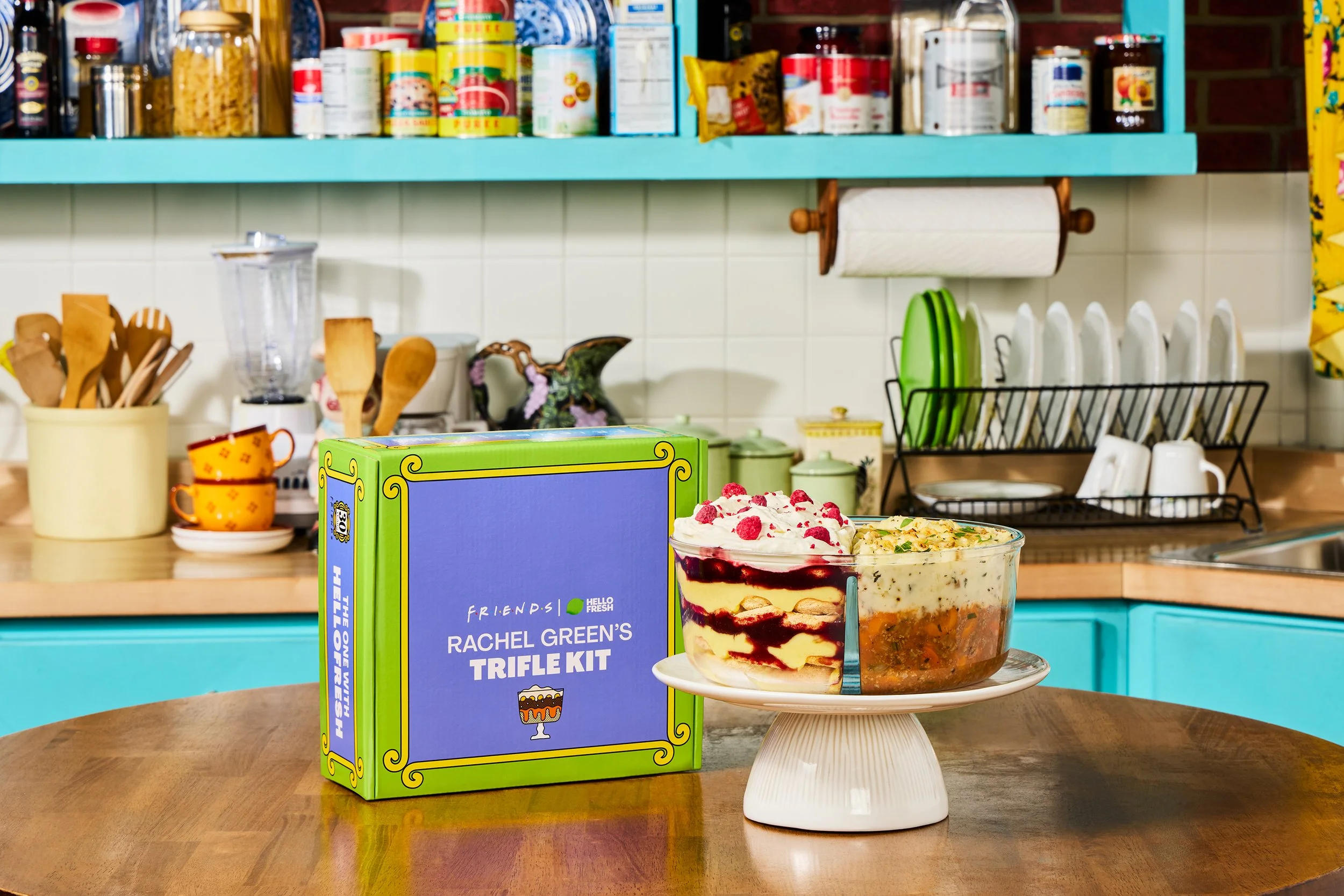 In 2024, HelloFresh partnered with Warner Bros. to recreate Rachel's legendary trifle from the beloved Friends Thanksgiving episode, celebrating the show's 30th anniversary. While Rachel accidentally combined her English trifle recipe with shepherd's pie (creating the infamous beef, peas, and onions disaster), we separated the two recipes so customers could enjoy both the proper English trifle and a delicious shepherd's pie.