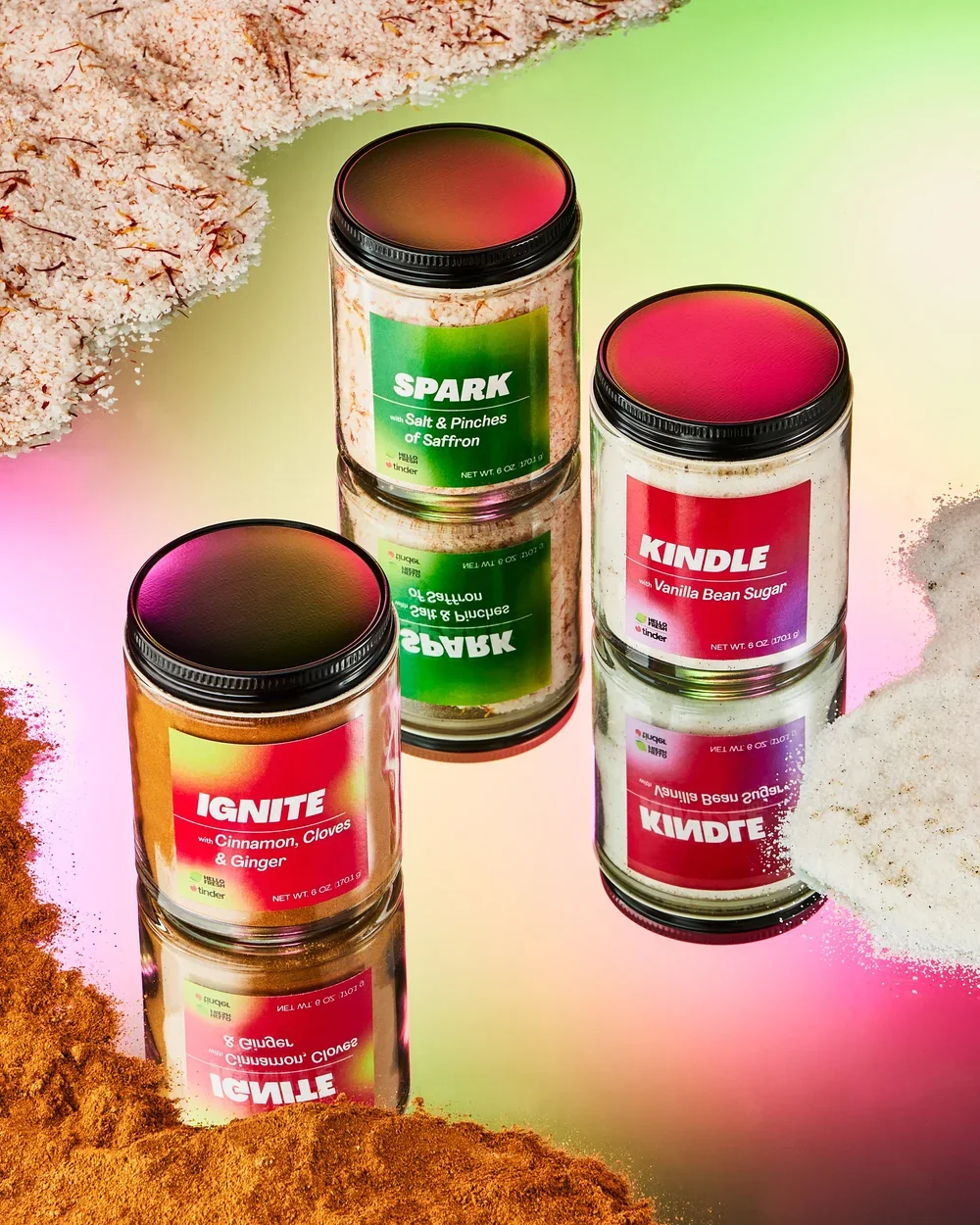 Forking Seasonings: Three original spice blends my team helped develop—Ignite (cinnamon, cloves, and ginger); Spark (saffron and salt); and Kindle (vanilla and sugar) with an interactive "relationship spiciness quiz."