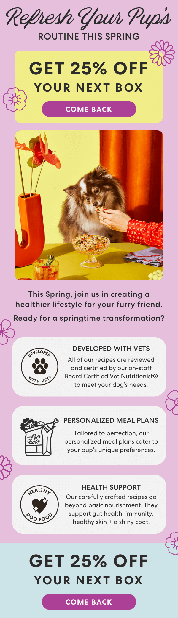 Customer Satisfaction: 85% customer satisfaction rate with pet parents saying their dogs prefer The Pets Table to their previous food